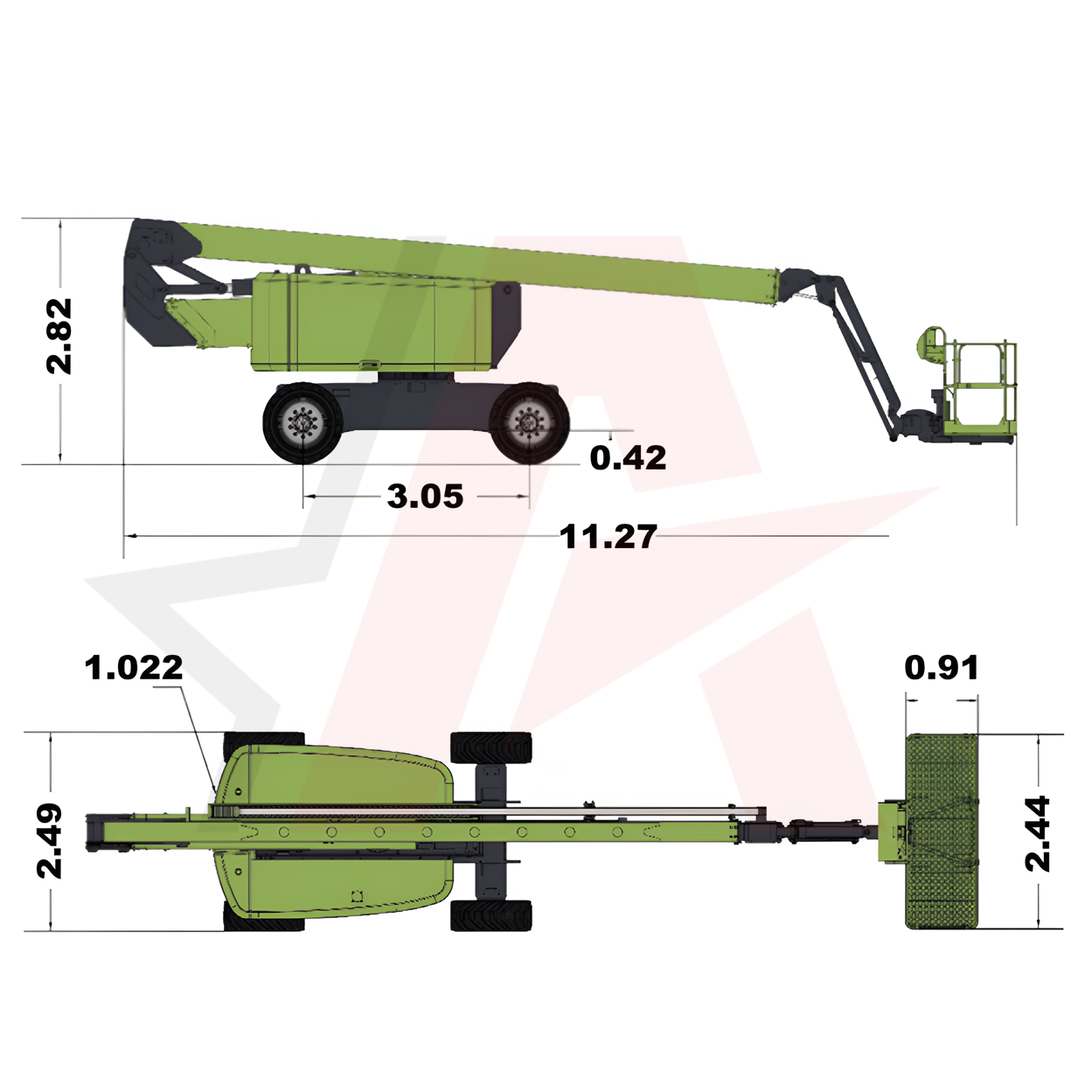 - Высота подъема с возможностью поворота составляет 9,29 метра