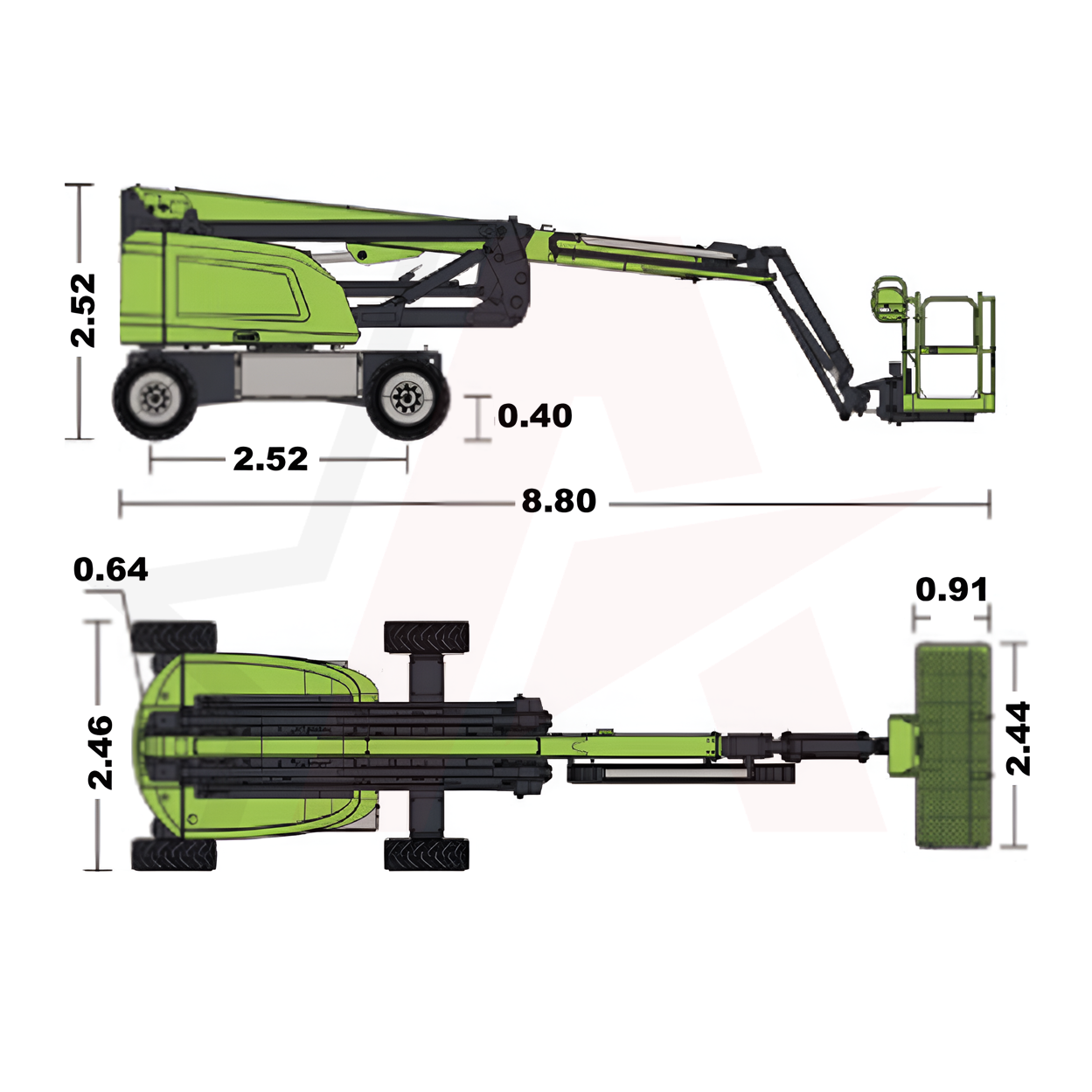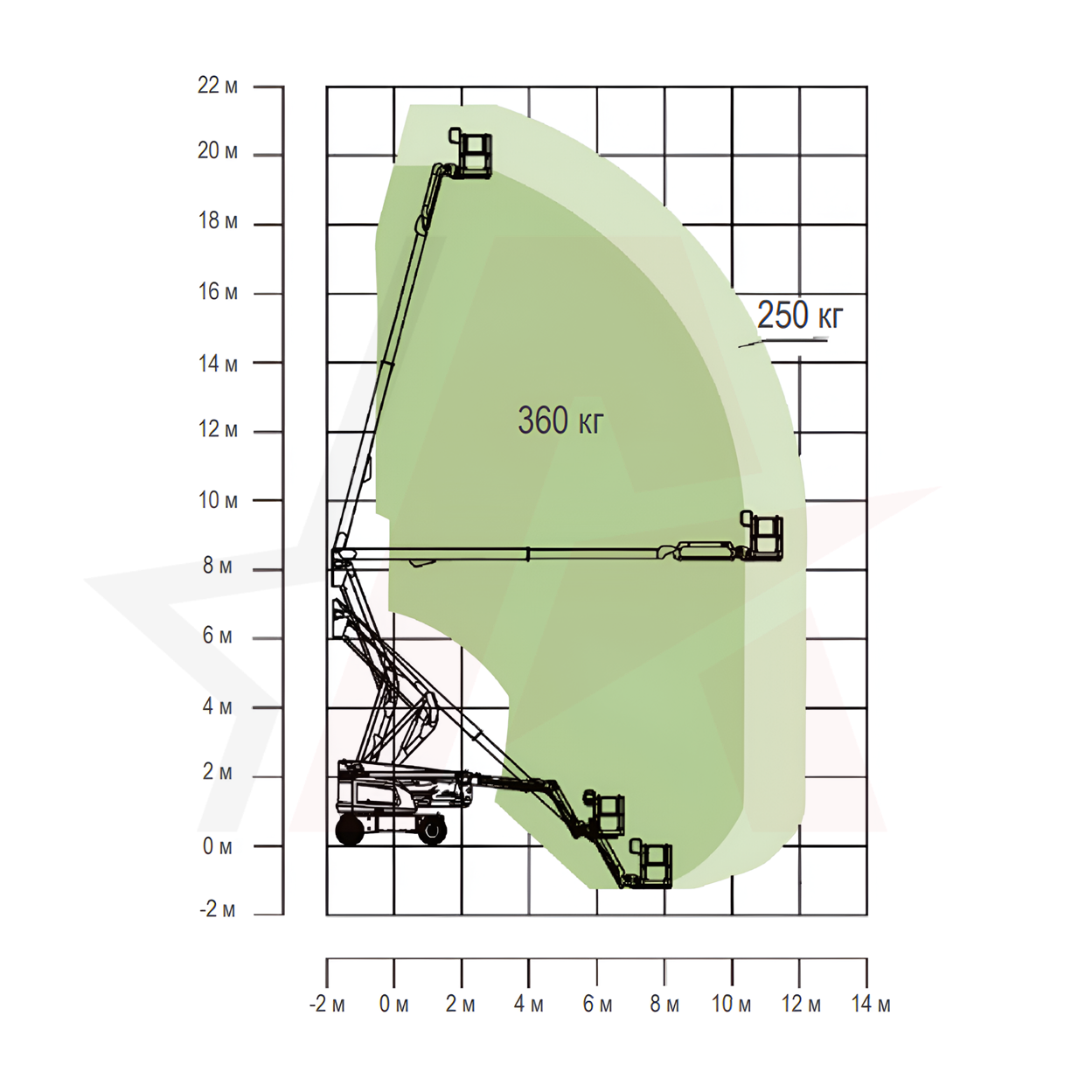 По сравнению с конкурентами, данная модель обладает большой рабочей высотой в 21,38 м и грузоподъемностью 250/360 кг.